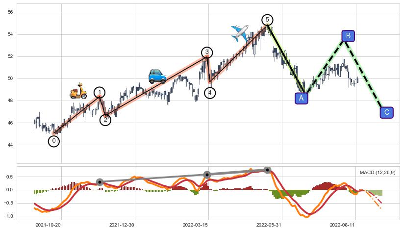 ➣ 第一, 三, 五浪上涨动能逐渐【增强变大】,趋势不断加固