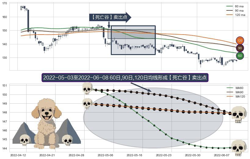 形态多维评估: ⚀ 2022-05-04-日至2022-06-08-日显现 60日-90日-120日均线 【死亡谷】卖出点 看空信号,后市看跌,卖出