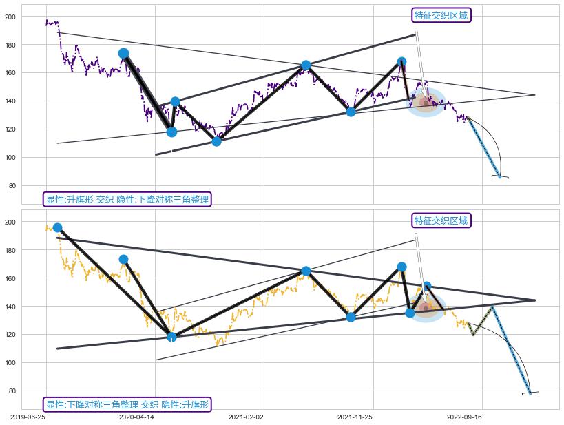 | 3 📐:升旗形支撑破位转换阻力下跌 ➕ 🌊:波浪理论c点反弹终止反转下跌 ☞ 看空信号 ⇥ 【图形】交织【图形】⇥ 综合量化分数: 37 | > |