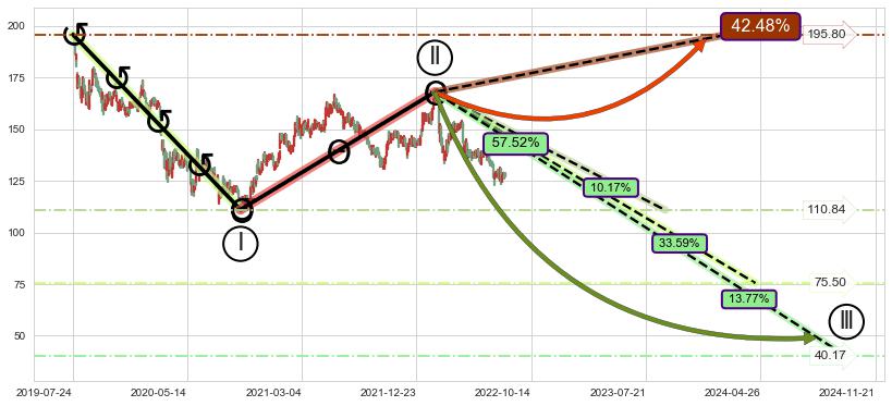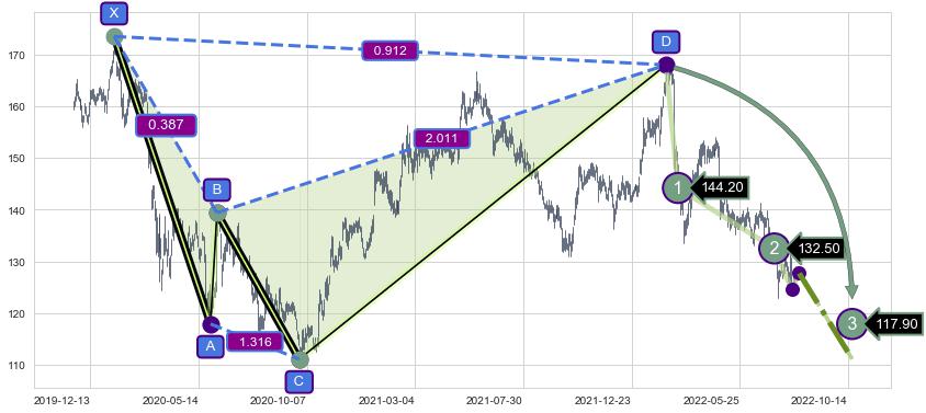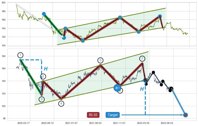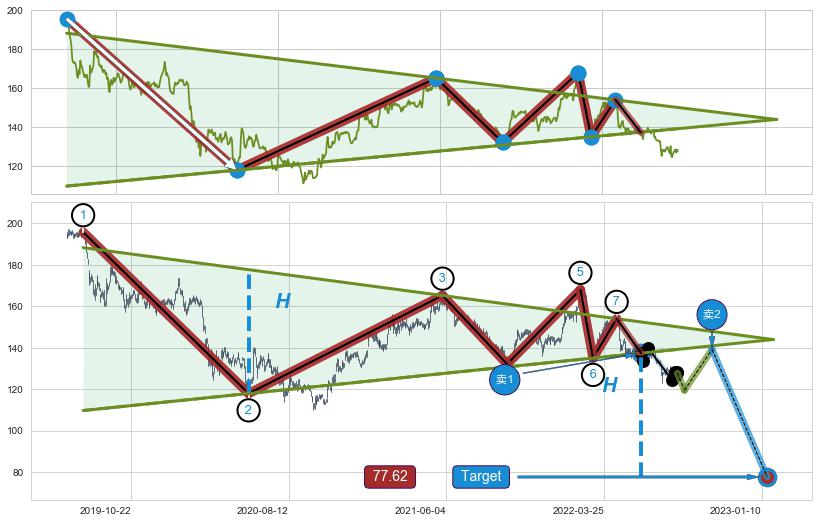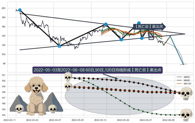 ➣ D点拟合预测价格183.74,距离最后交易收盘价格127.70相差 +43.88%