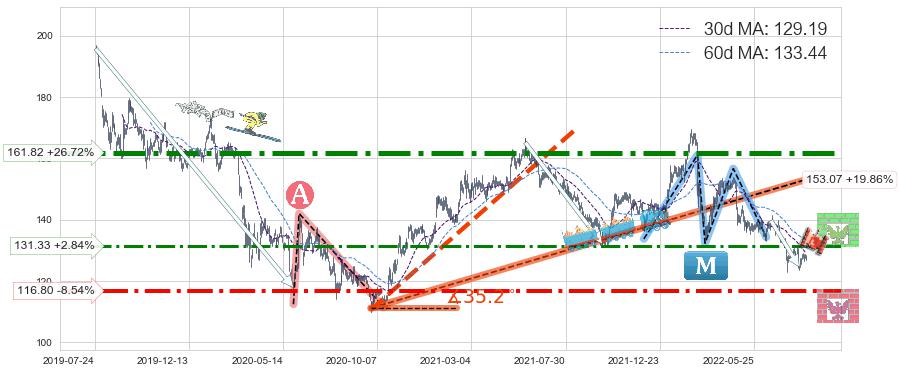 ➣ 2022-07-12到达第❷价格目标位置132.50