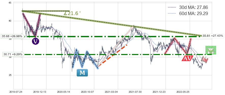 ♘ 阻力价格位30.71,可信任强度72.14%,距离最后交易2022-08-12形成的收盘价格28.10相差 +9.29%