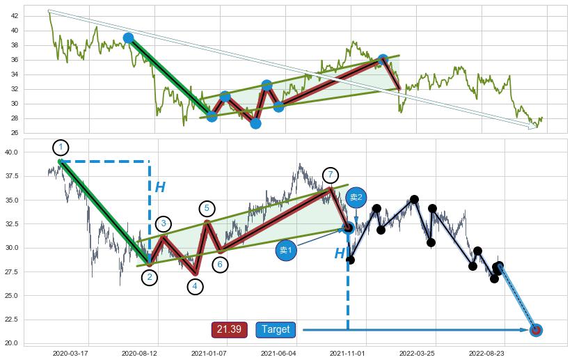 ➣ 最小中继整理跌幅→𝐇: 10.70 (𝐇旗杆的长度:旗杆起点→顶点)