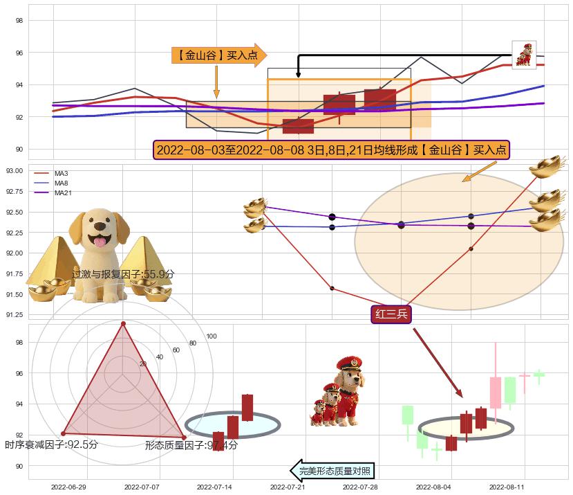 | 3 🅚:【金山谷】买入点 ➕ 📡:谐波伽利猜想c点下沉接近b点后强支撑来临拉升上涨(均值回复) ☞ 看多信号 ⇥ 【均线】交织【图形】⇥ 综合量化分数: 70 | > |