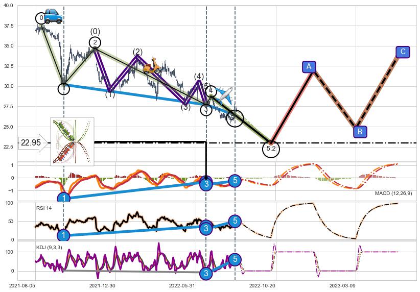 ➢ 5.2: 预测第5浪最终位置(2022-10-12, 22.95)