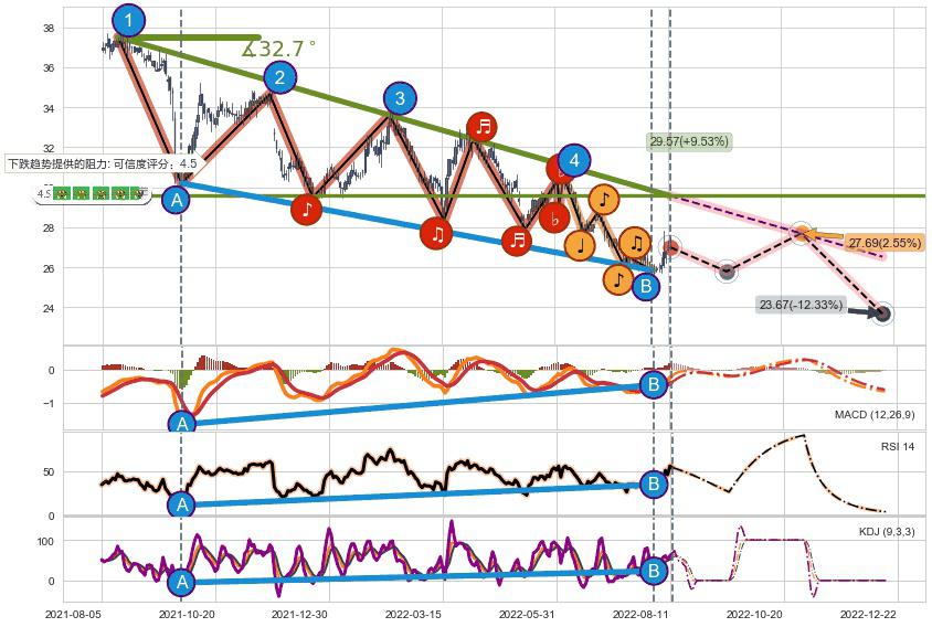 ♘ 阻力价格位33.19,可信任强度90.63%,距离最后交易2022-08-12形成的收盘价格27.00相差 +22.91%