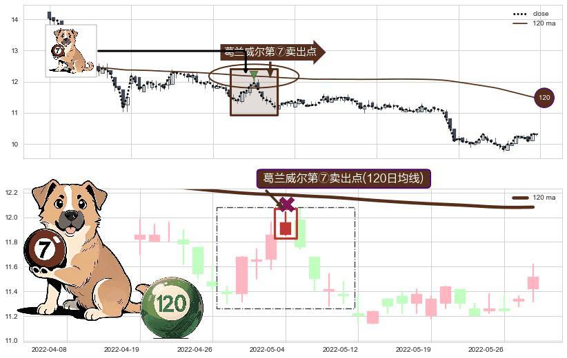⚀ 2022-05-04-日显现 葛兰威尔均线 120日均线 第⑦卖出点 下降趋势的中继信号,后市看跌,卖出信号