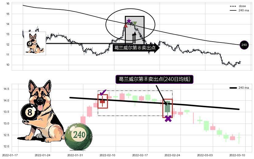 ⚀ 2022-02-22-日显现 葛兰威尔均线 240日均线 第⑧卖出点 下降趋势的中继信号,后市看跌,卖出信号