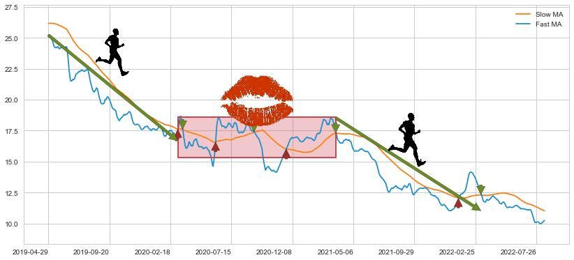 2021-03-23至2022-03-10 慢线与快线呈空头排列, 慢线与快线接触少,无缠绕