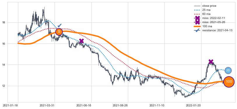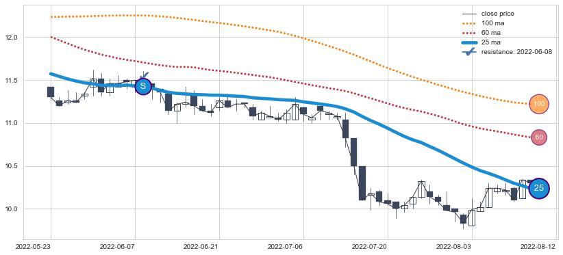 ⚂ 2022-02-08-日均线向上突破,2022-02-22-日重新下穿均线破位,均线阻力再次生效