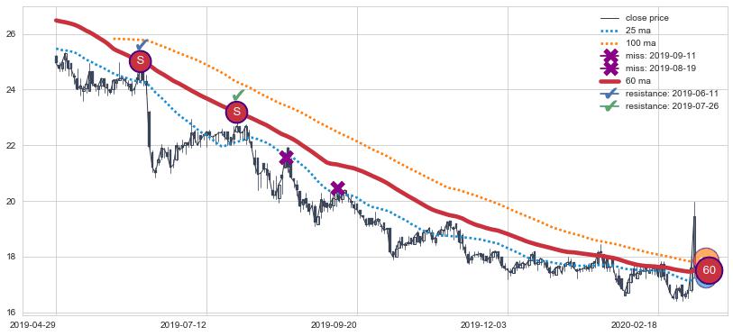 ⚄ 价格在均线遇到阻力后已再次向下回落了【极长】距离, 第⑦卖出点 阻力效果得到【明确确认】