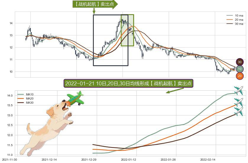 ⚀ 2021-12-28日-2022-02-21日显现 10日-20日-30日均线 【战机起航】卖出点 看空信号,后市看跌,卖出