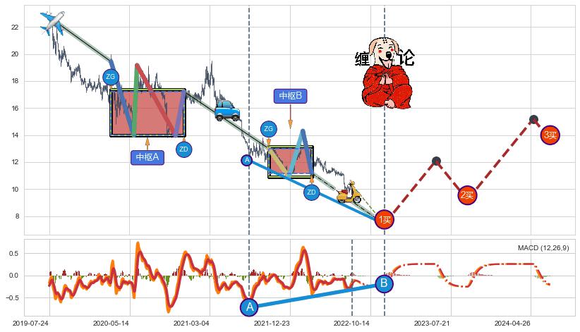 ➣ 【未完成】缠论 起点:2019-07-26, 完成第1中枢A,完成第2中枢B,到达2022-08-12