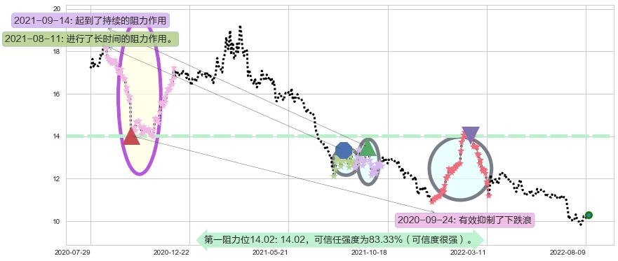 ♘ 阻力价格位14.02,可信任强度83.33%,距离最后交易2022-08-12形成的收盘价格10.30相差 +36.07%