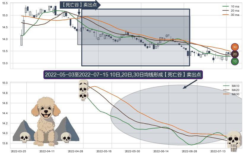形态多维评估: ⚀ 2022-05-04-日至2022-07-15-日显现 10日-20日-30日均线 【死亡谷】卖出点 看空信号,后市看跌,卖出