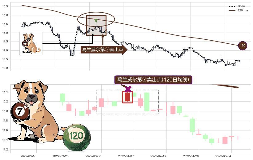 形态多维评估: ⚀ 2022-04-06-日显现 葛兰威尔均线 120日均线 第⑦卖出点 下降趋势的中继信号,后市看跌,卖出信号