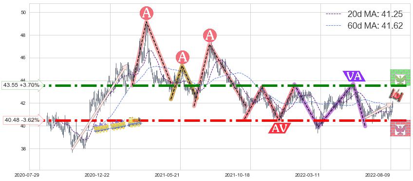 ♘ 支撑价格位40.48,可信任强度92.45%,距离最后交易2022-08-12形成的收盘价格42.00相差 -3.62%