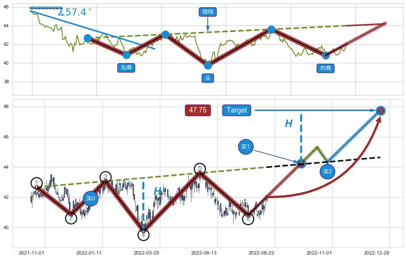 ➣ 最小反转涨幅→𝐇: 3.519 (头部与颈线垂直距离)