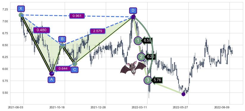 ➣ 已完成【蝙蝠】形态起点X: 2021-07-29, 终点D: 2022-02-16, 共137交易日