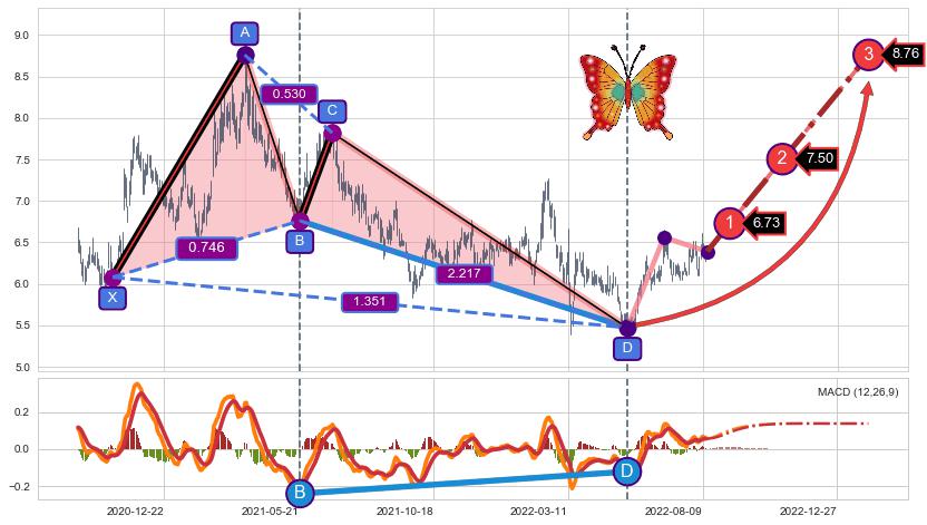 ➣ 已完成【蝴蝶】形态起点X: 2020-10-29, 终点D: 2022-05-19, 共383交易日