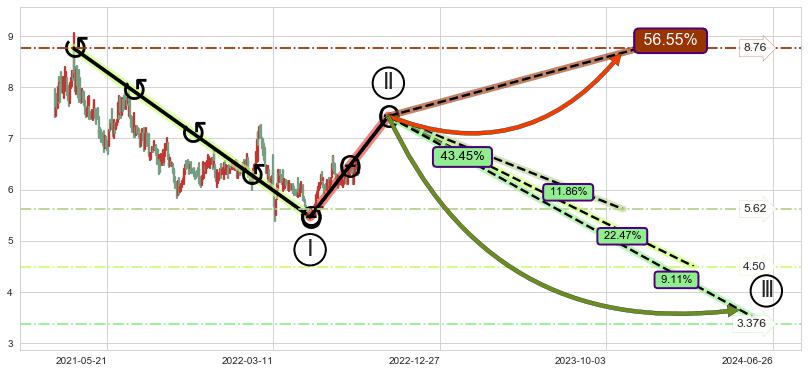 ➢ 2022-03-14到达第❸价格目标位置5.76