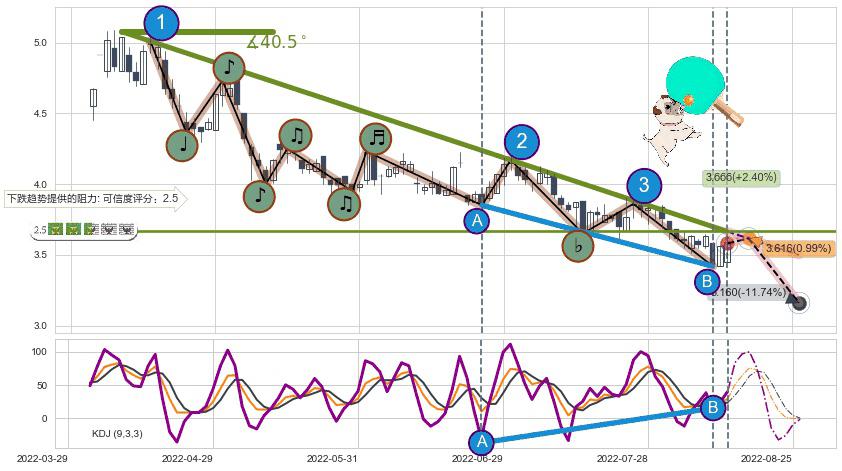 ➢ 预测:2022-08-17,【小幅反弹】稳定目前下跌趋势的前提下,预测价格:3.616