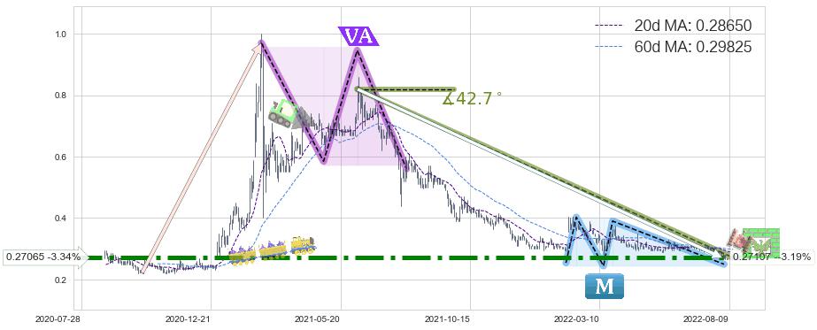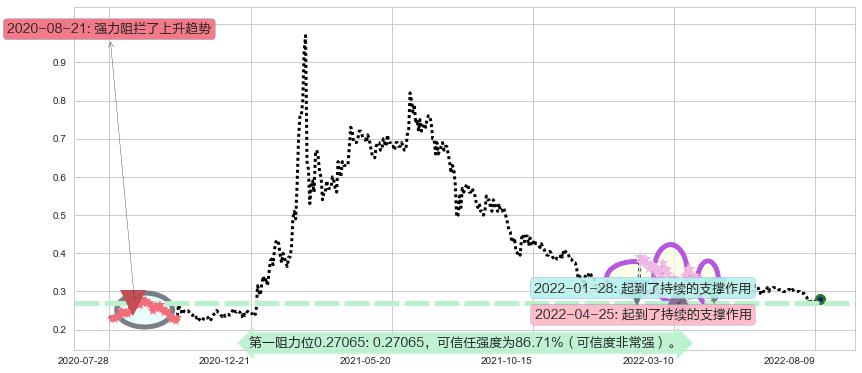 ♘ 阻力价格位0.27065,可信任强度86.71%,距离最后交易2022-08-12形成的收盘价格0.28000相差 -3.34%