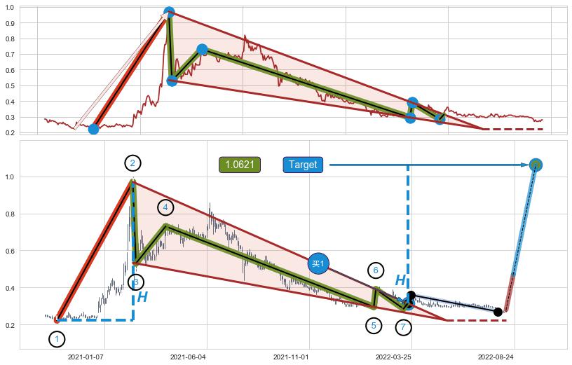 ➢ 【买1】: 激进型 买点 →(2022-03-21: 0.31414 )形成突破降🚩楔型【整理】形态