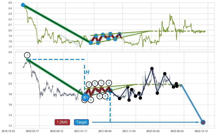 ➣ 【已确认突破】最后价格:1.9700与最小【整理】第一目标价格→(2022-12-14: 1.2645 )相较: 下跌空间【较大】