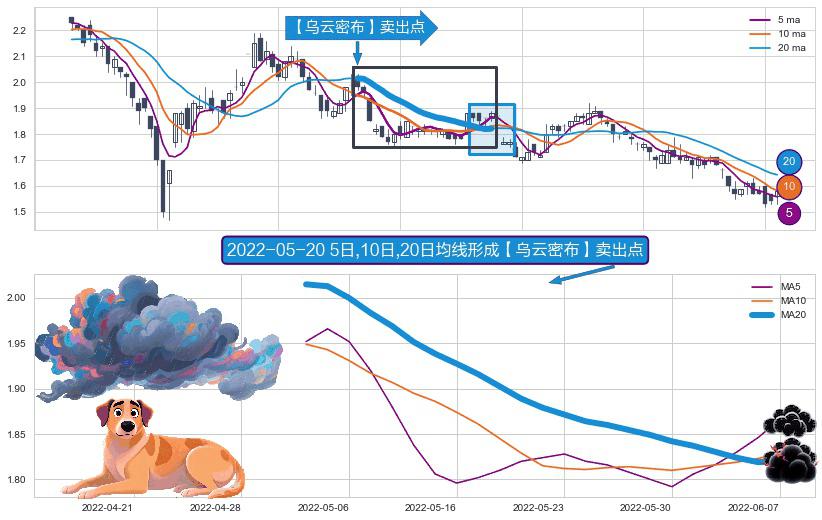 形态多维评估: ⚀ 2022-05-04日-2022-06-07日显现 5日-10日-20日均线 【乌云密布】卖出点 看空信号,后市看跌,卖出
