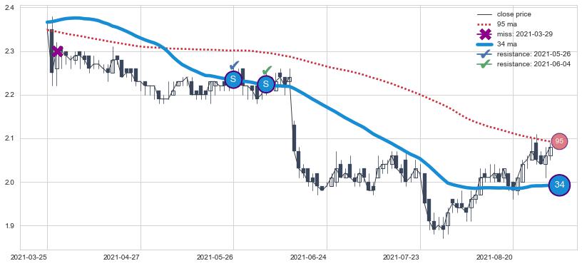 下跌趋势2021-03-25-2021-09-01,均线34确认关键阻力2处