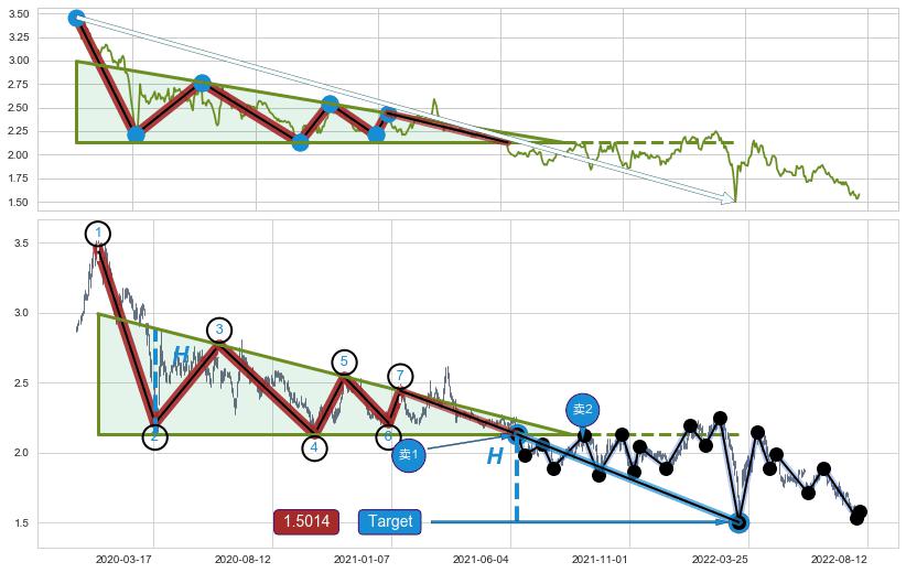➣ 最小中继整理跌幅→𝐇: 0.7500 (𝐇旗杆的长度:旗杆起点→顶点)