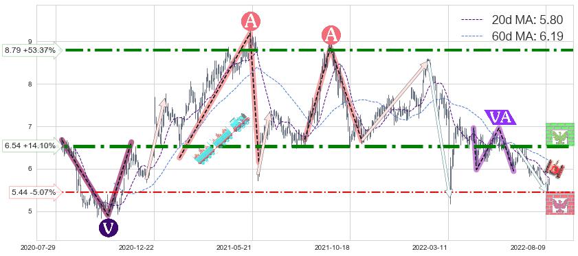 ♘ 阻力价格位6.54,可信任强度86.39%,距离最后交易2022-08-12形成的收盘价格5.73相差 +14.10%