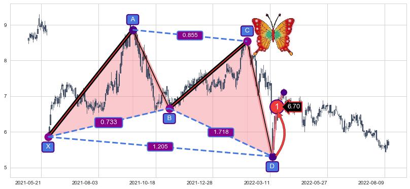 ➣ 已完成【蝴蝶】形态起点X: 2021-05-31, 终点D: 2022-03-15, 共197交易日