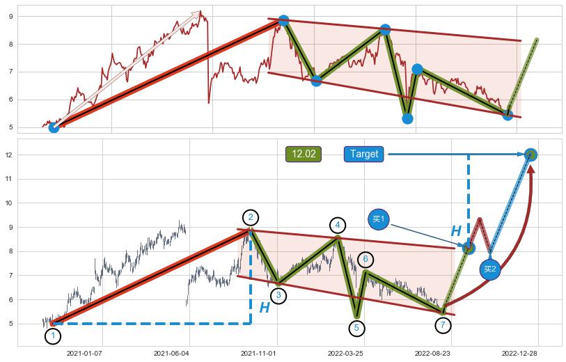 ➢ 2022-03-21到达第❶价格目标位置6.70