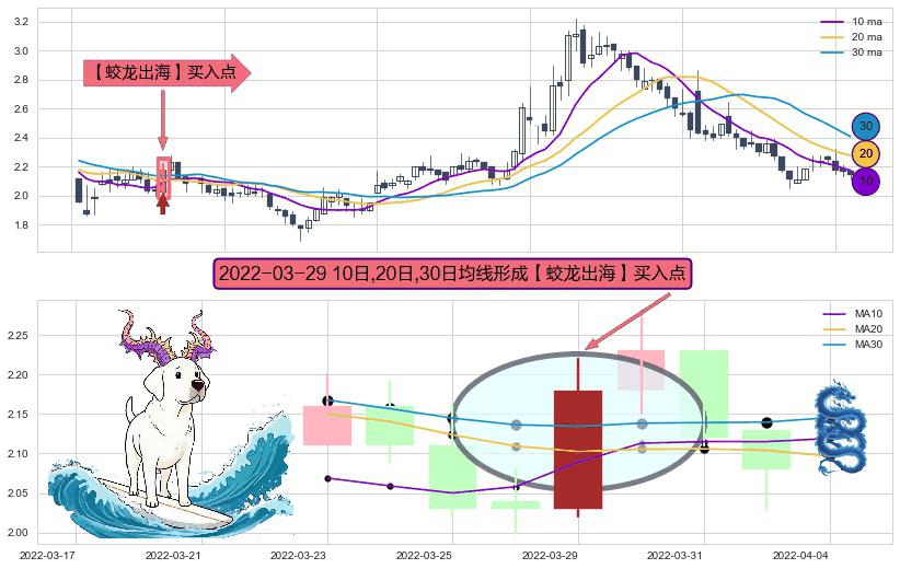 ⚀ 2022-03-29日显现 10日-20日-30日均线 【蛟龙出海】买入点 看多信号,后市看涨,买入