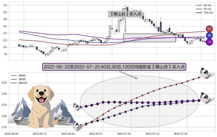 ⚀ 2022-06-23-日至2022-07-25-日显现 60日-90日-120日均线 【银山谷】买入点 看多信号,后市看涨,买入