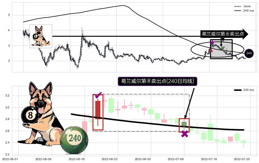 ⚀ 2022-07-08-日显现 葛兰威尔均线 240日均线 第⑧卖出点 下降趋势的中继信号,后市看跌,卖出信号