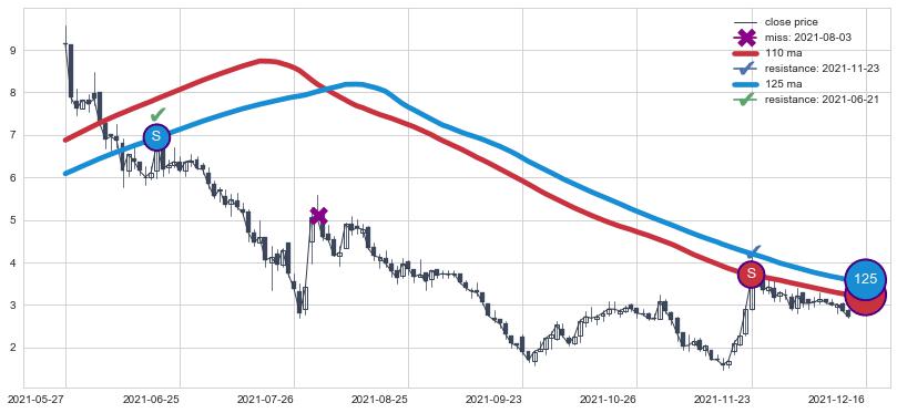 ⚂ 2022-06-20-日均线向上突破,2022-07-08-日重新下穿均线破位,均线阻力再次生效