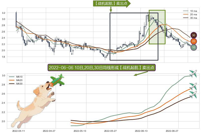 ⚀ 2022-05-05日-2022-07-04日显现 10日-20日-30日均线 【战机起航】卖出点 看空信号,后市看跌,卖出