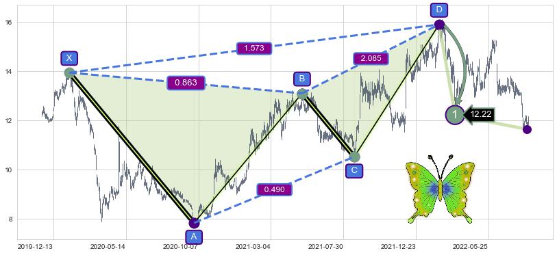 ➣ 已完成【蝴蝶】形态起点X: 2020-01-17, 终点D: 2022-02-11, 共511交易日
