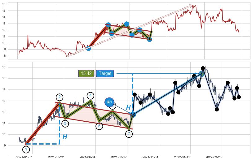 ➣ 最小中继整理涨幅→𝐇: 3.670 (𝐇旗杆的长度:旗杆起点→顶点)