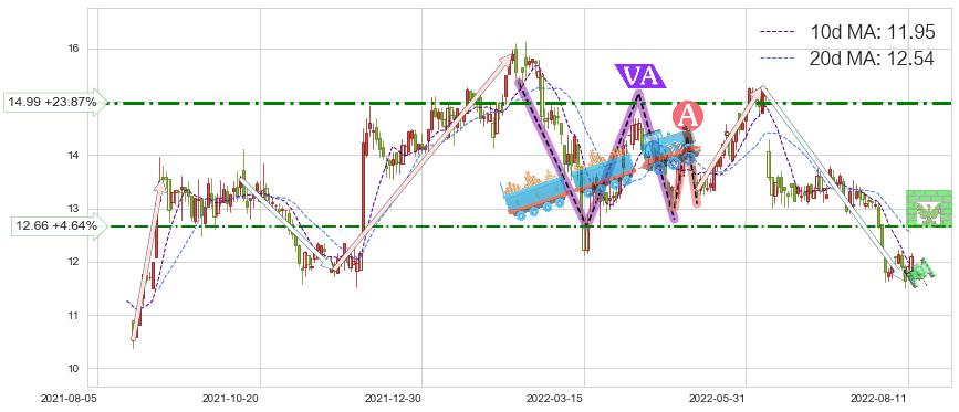 ♘ 阻力价格位14.99,可信任强度60.99%,距离最后交易2022-08-12形成的收盘价格12.10相差 +23.87%