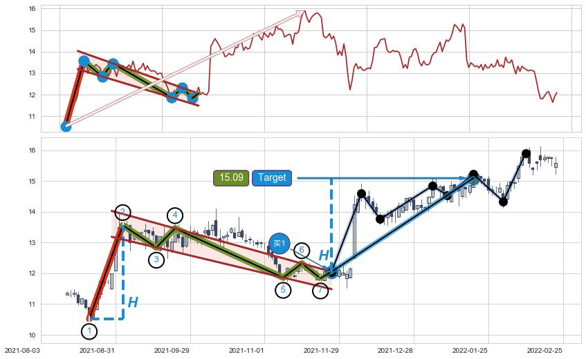 ➣ 最小中继整理涨幅→𝐇: 3.040 (𝐇旗杆的长度:旗杆起点→顶点)