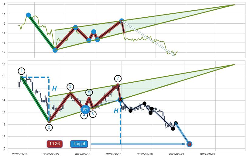 ➢ 2022-06-10到达第❶价格目标位置13.60