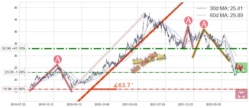 ♘ 阻力价格位32.96,可信任强度81.30%,距离最后交易2022-08-12形成的收盘价格23.35相差 +41.15%