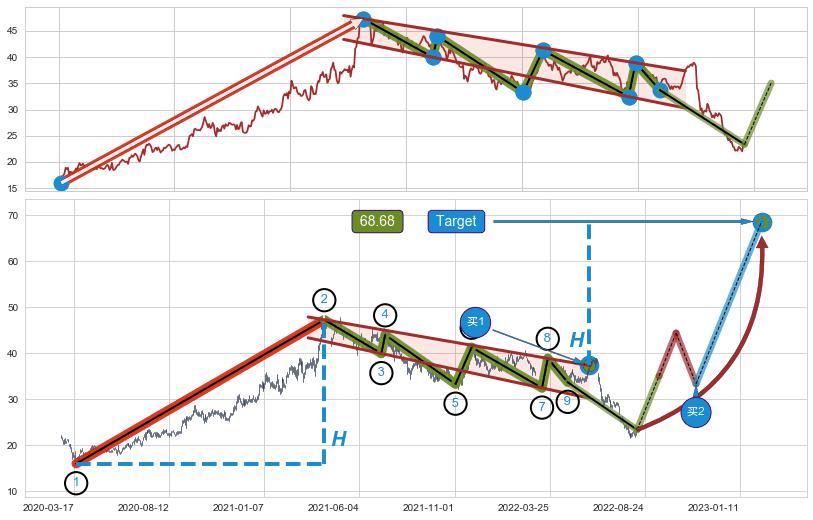 ➣ 最小中继整理涨幅→𝐇: 31.32 (𝐇旗杆的长度:旗杆起点→顶点)