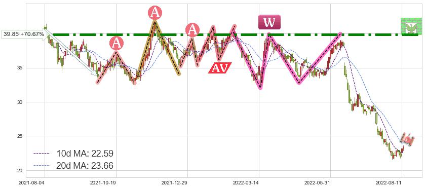 ♘ 阻力价格位39.85,可信任强度99.00%,距离最后交易2022-08-12形成的收盘价格23.35相差 +70.67%