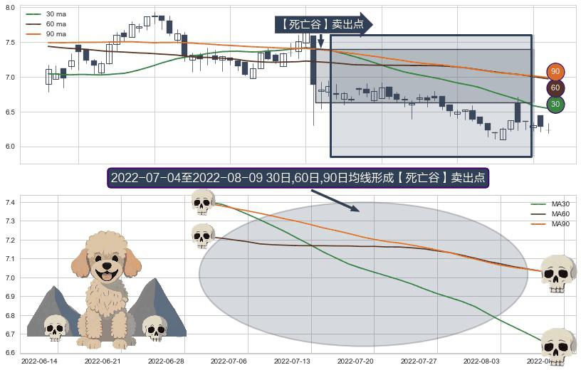 形态多维评估: ⚀ 2022-07-05-日至2022-08-09-日显现 30日-60日-90日均线 【死亡谷】卖出点 看空信号,后市看跌,卖出