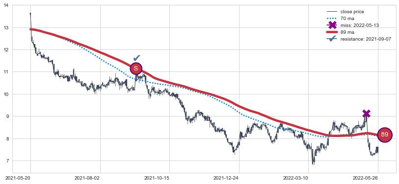 下跌趋势2021-05-20-2022-05-26,均线89确认关键阻力1处